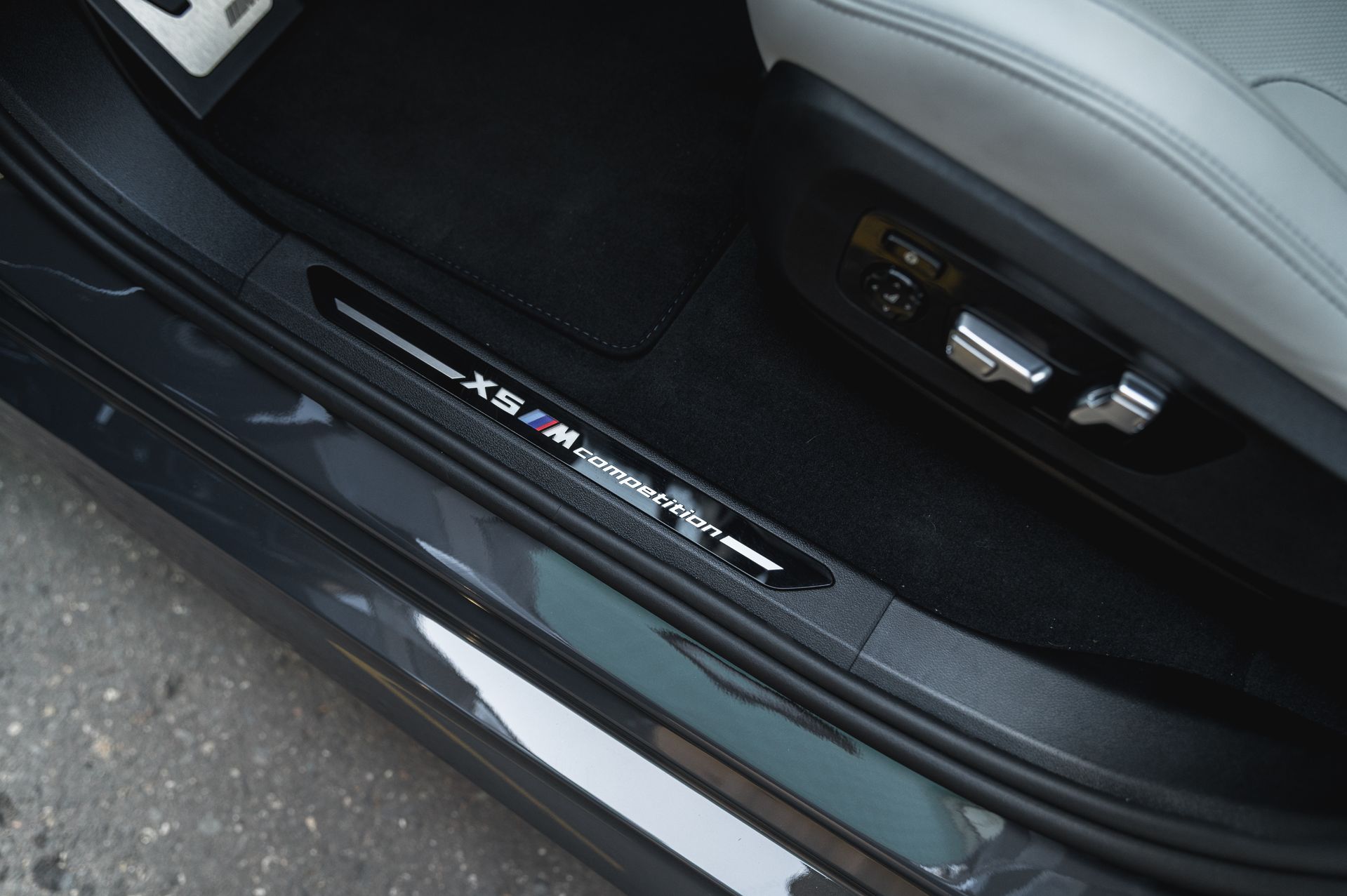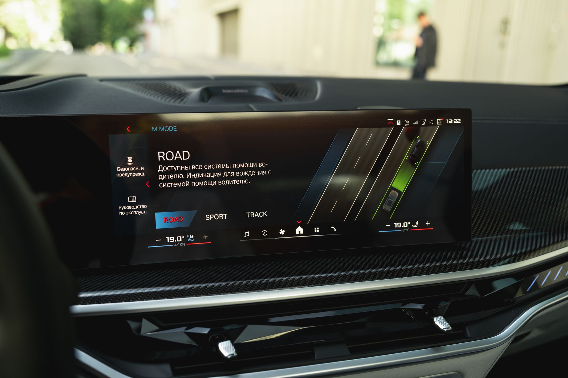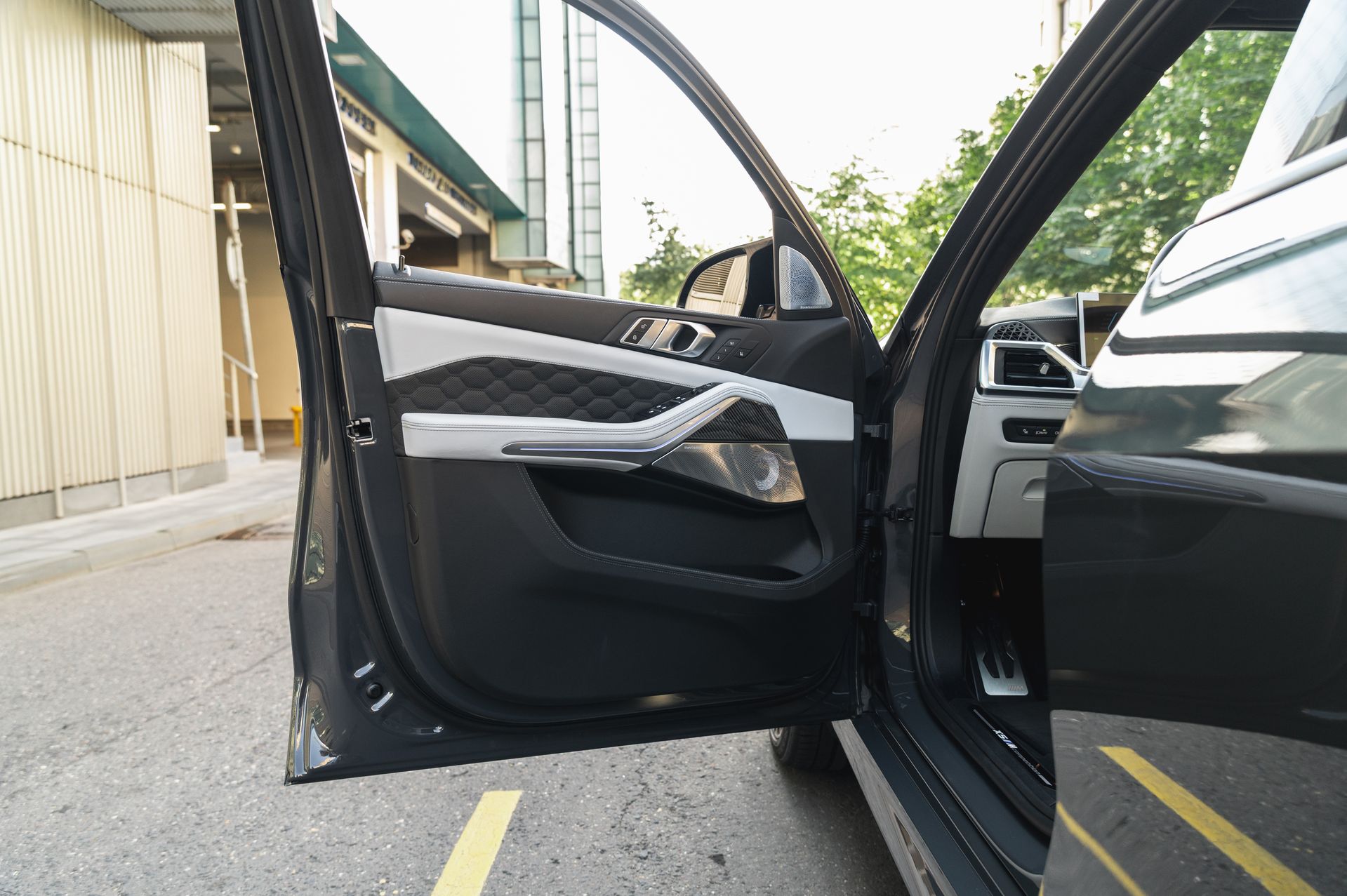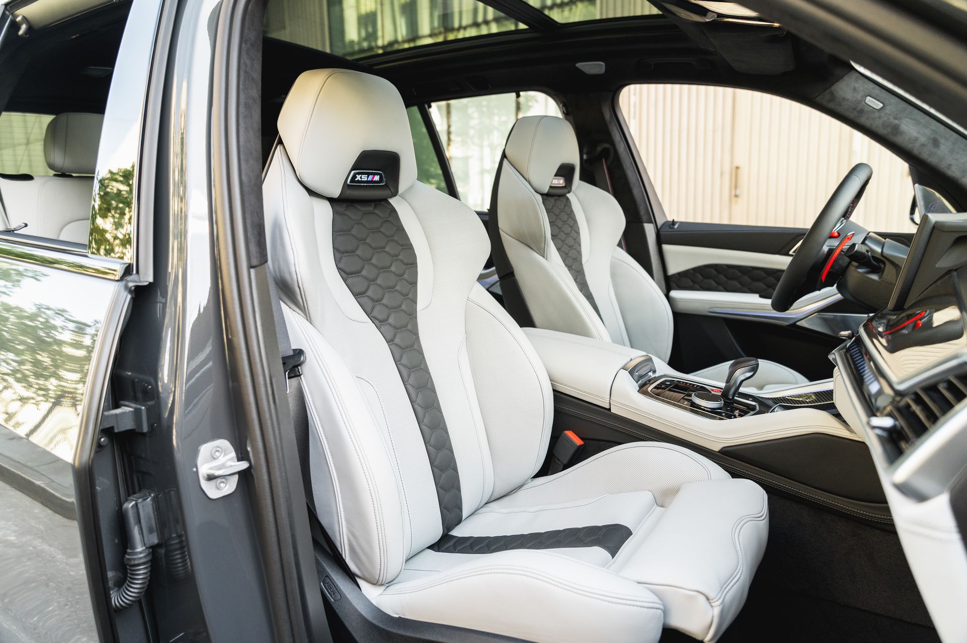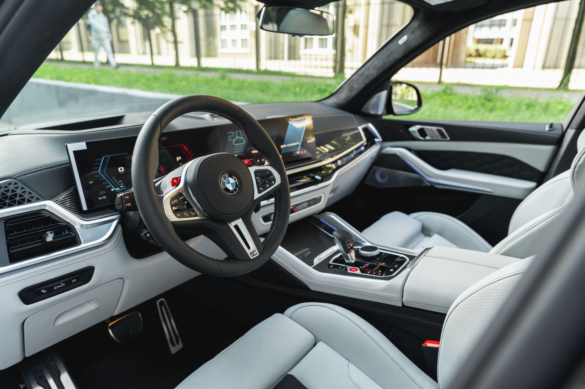 Внутри — многофункциональные сиденья M с выраженной боковой поддержкой, интегрированными подголовниками и подсвеченной эмблемой «X5M». Они надёжно фиксируют тело в поворотах и при этом остаются комфортными в длительных поездках.