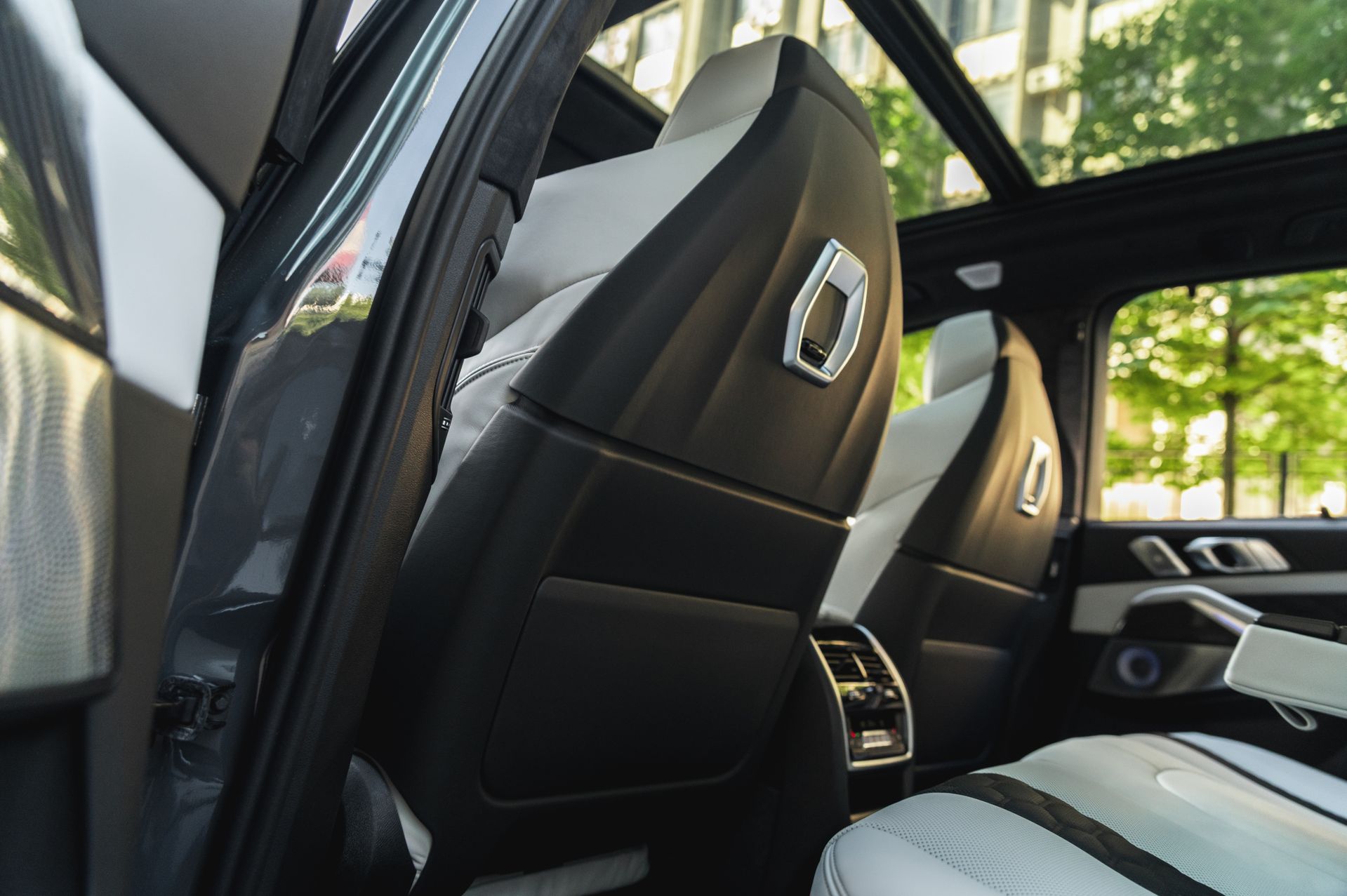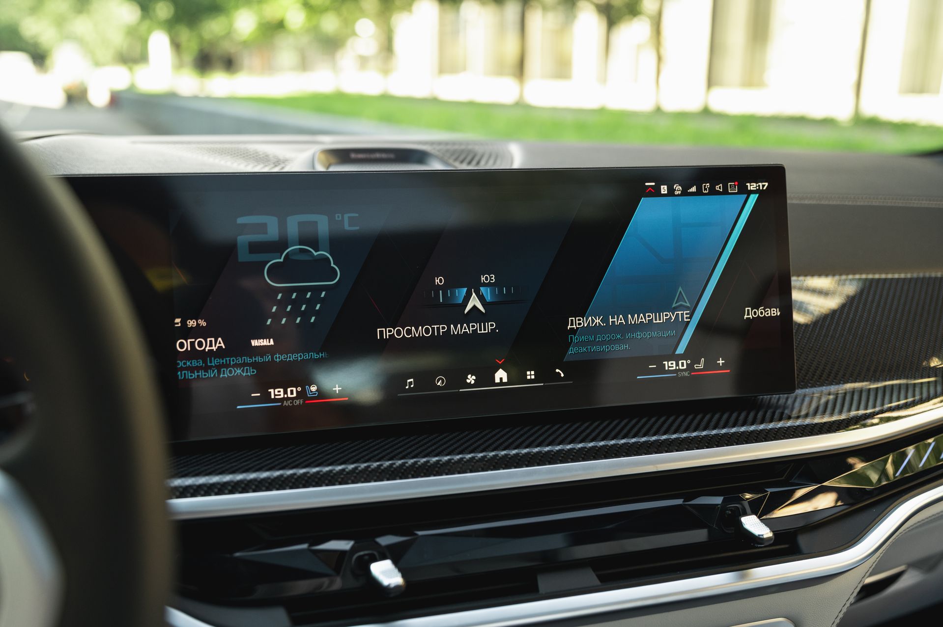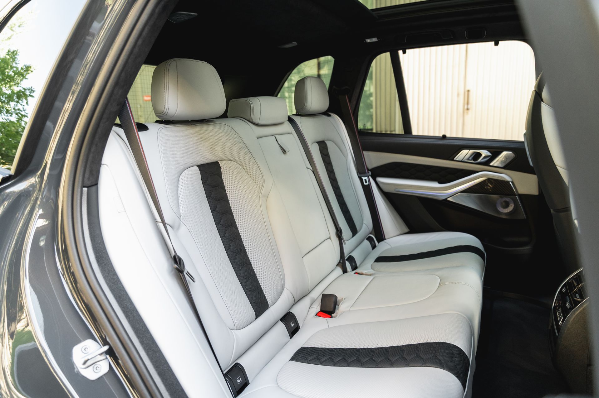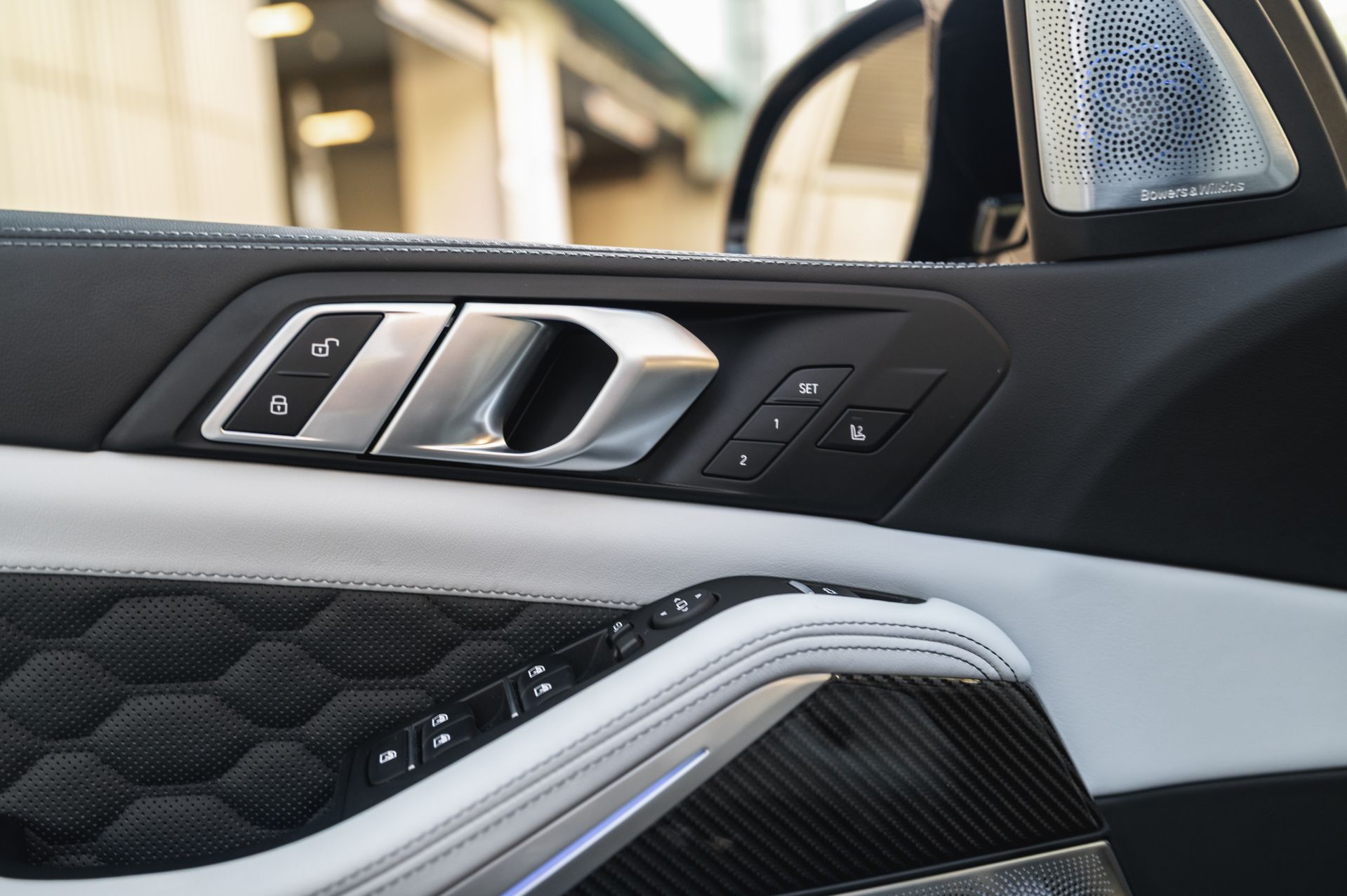 Внутри — многофункциональные сиденья M с выраженной боковой поддержкой, интегрированными подголовниками и подсвеченной эмблемой «X5M». Они надёжно фиксируют тело в поворотах и при этом остаются комфортными в длительных поездках.