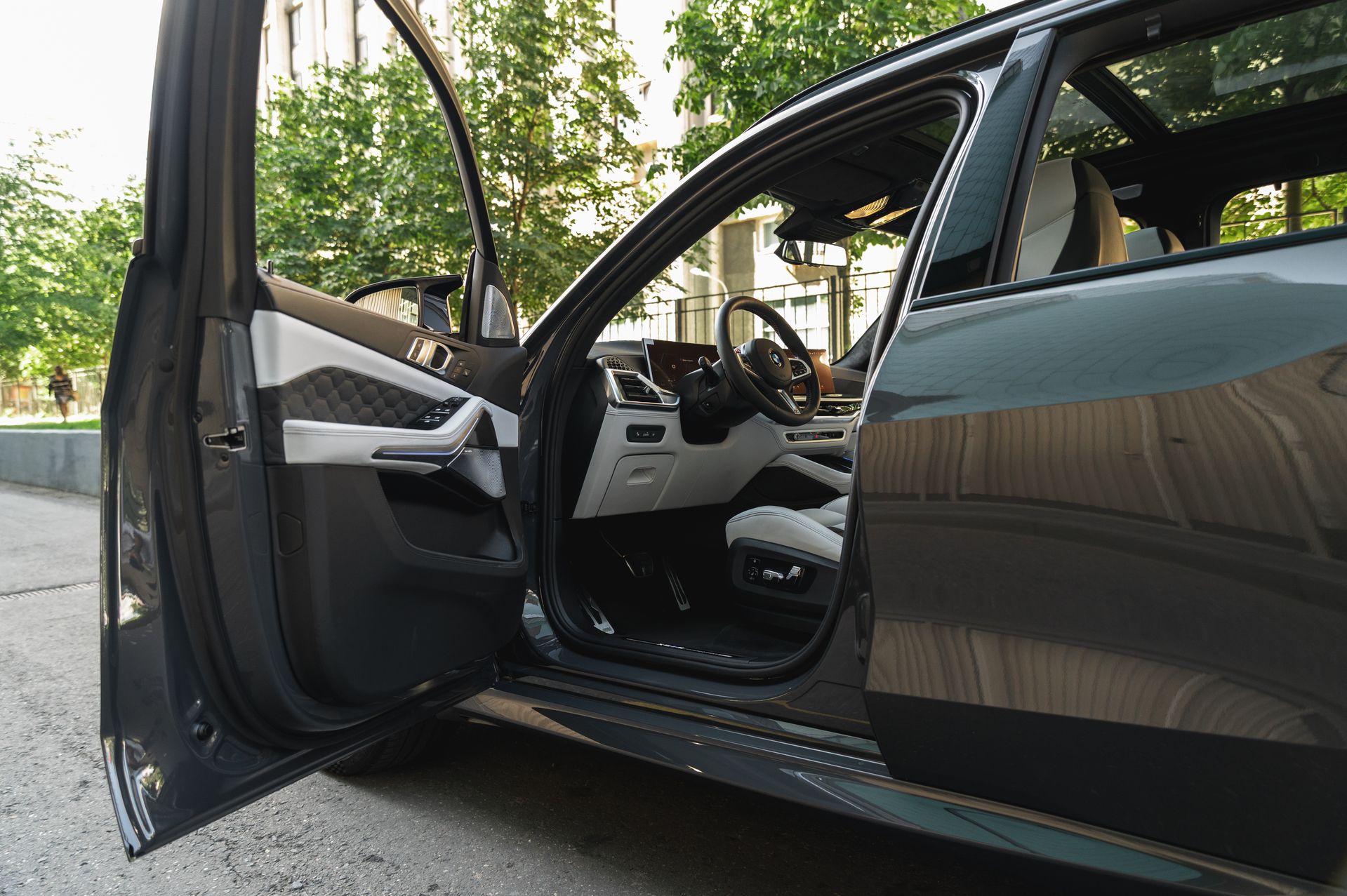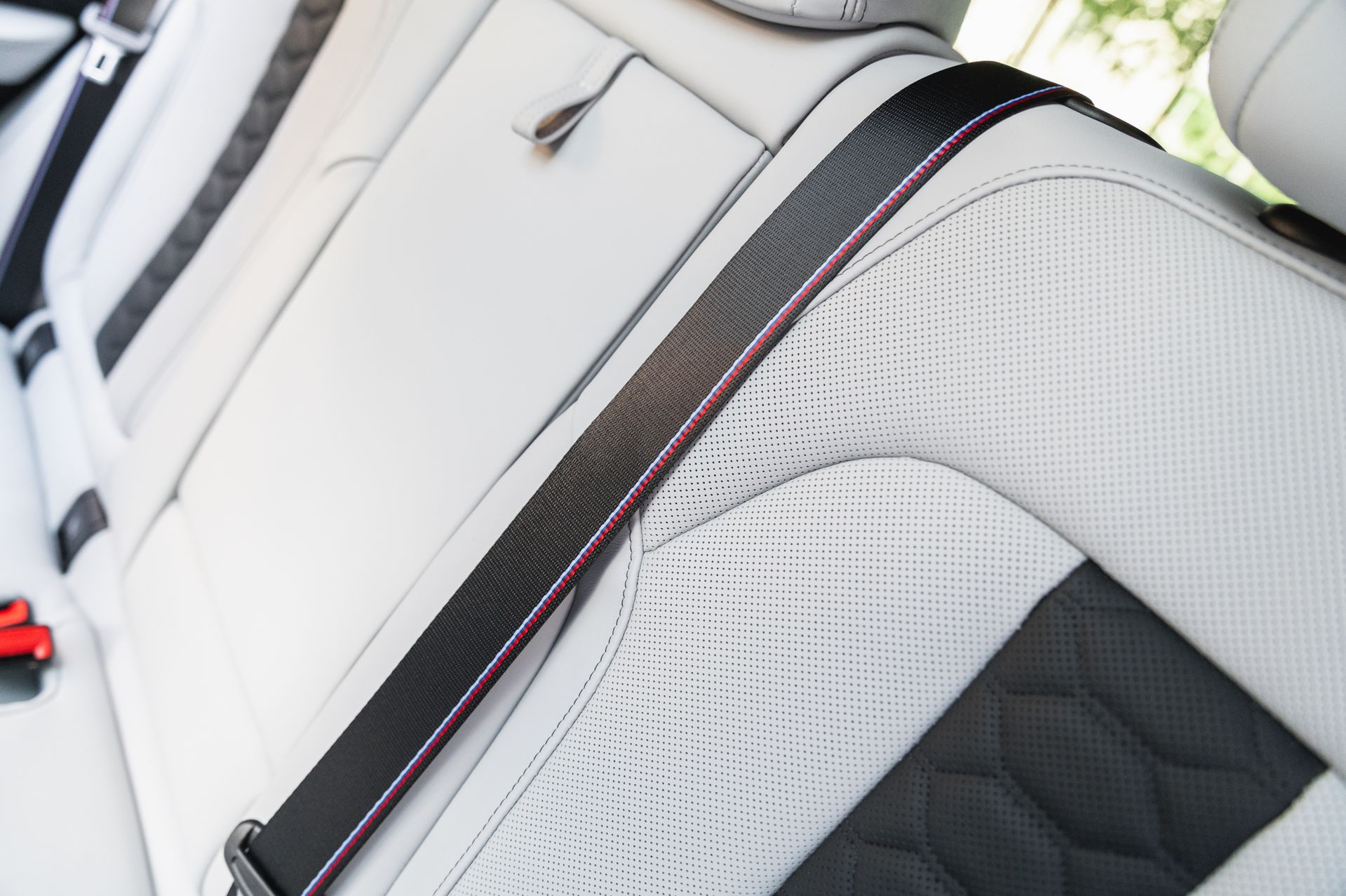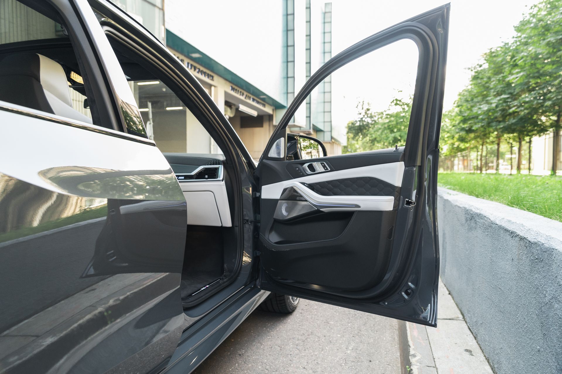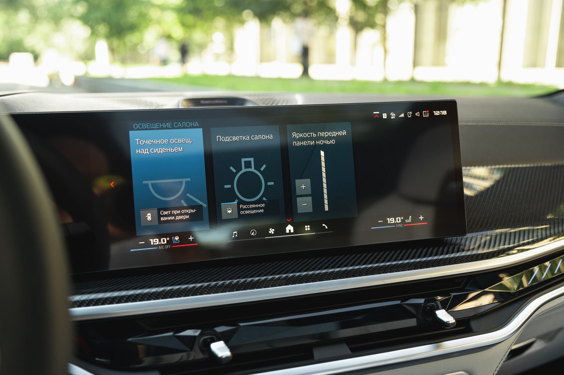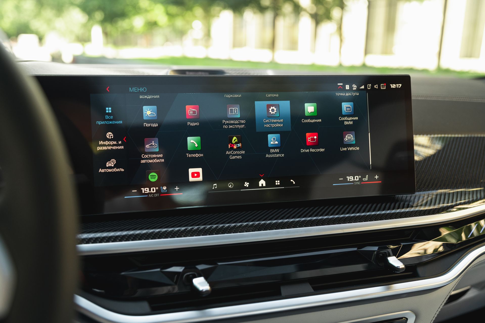 Внутри — многофункциональные сиденья M с выраженной боковой поддержкой, интегрированными подголовниками и подсвеченной эмблемой «X5M». Они надёжно фиксируют тело в поворотах и при этом остаются комфортными в длительных поездках.