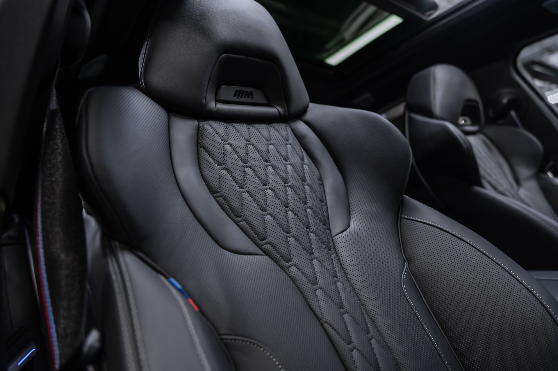 - Премиальная отделка салона: кожа Sensafin или Merino, декоративные вставки и M-потолок антрацит.