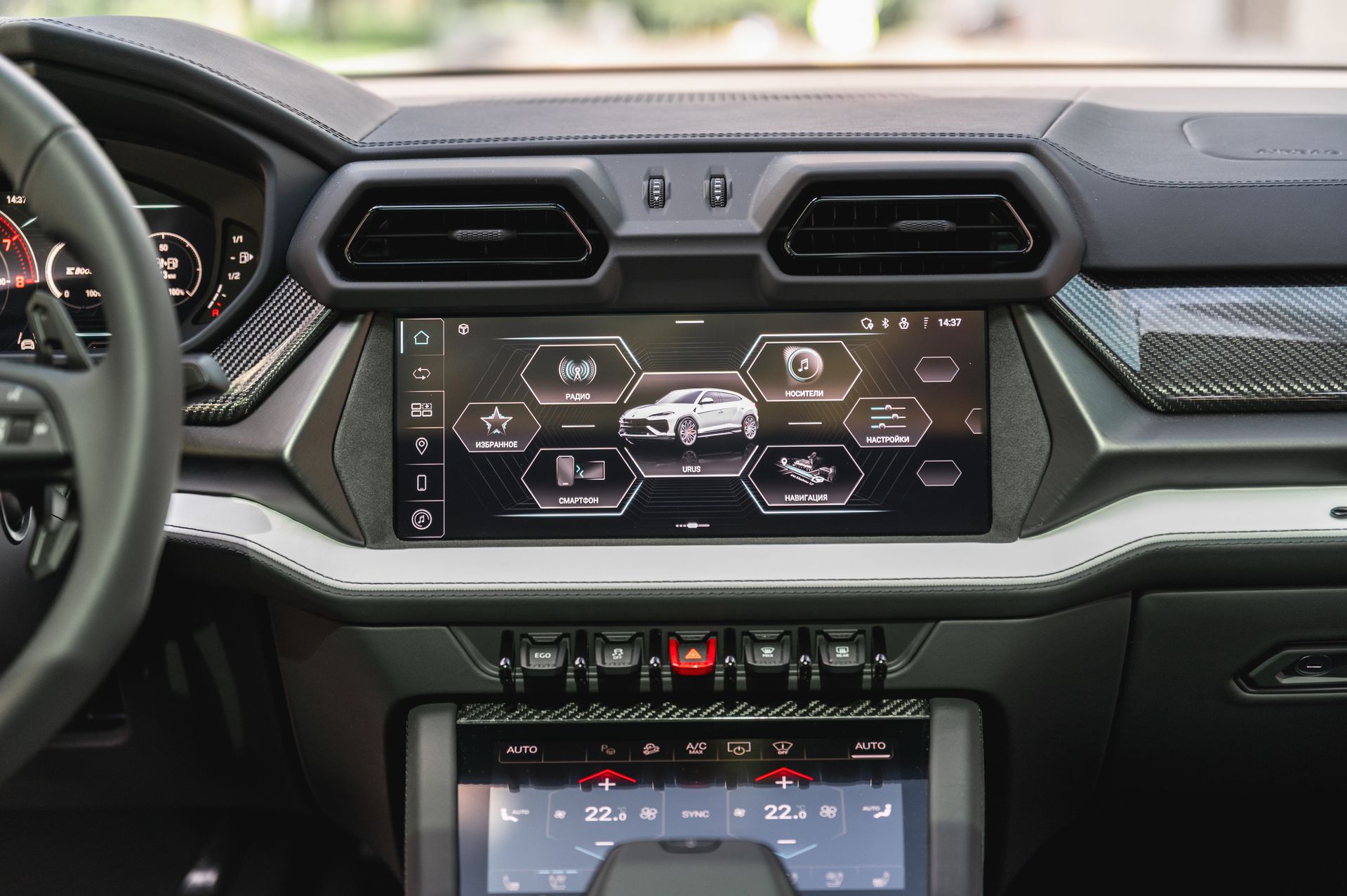 За звук отвечает премиальная аудиосистема Bang & Olufsen 3D. Многоканальное звучание, объёмный эффект и точная настройка под салон Lamborghini создают впечатление, будто вы находитесь в отдельном концертном зале, даже когда просто едете по городу.