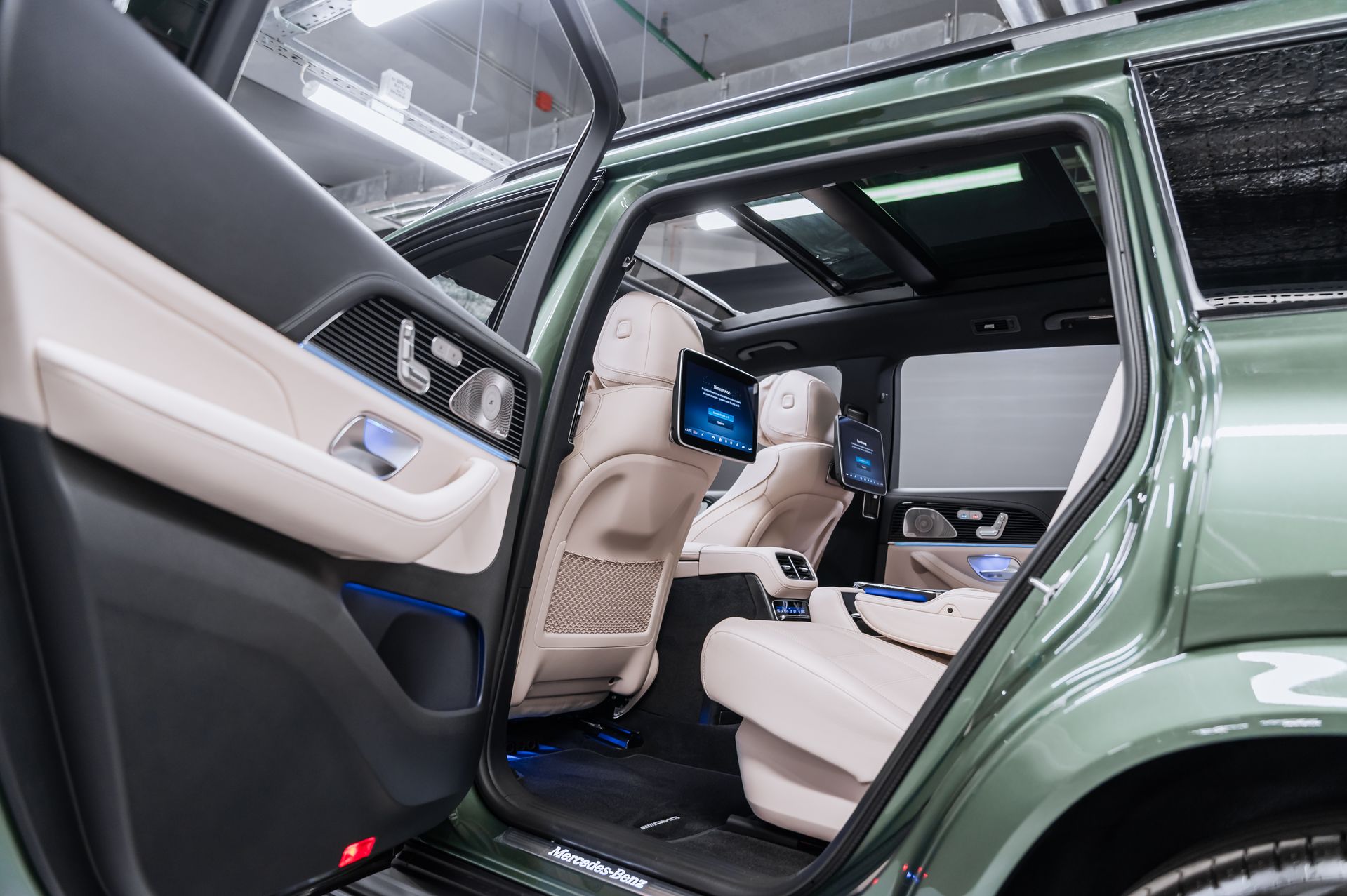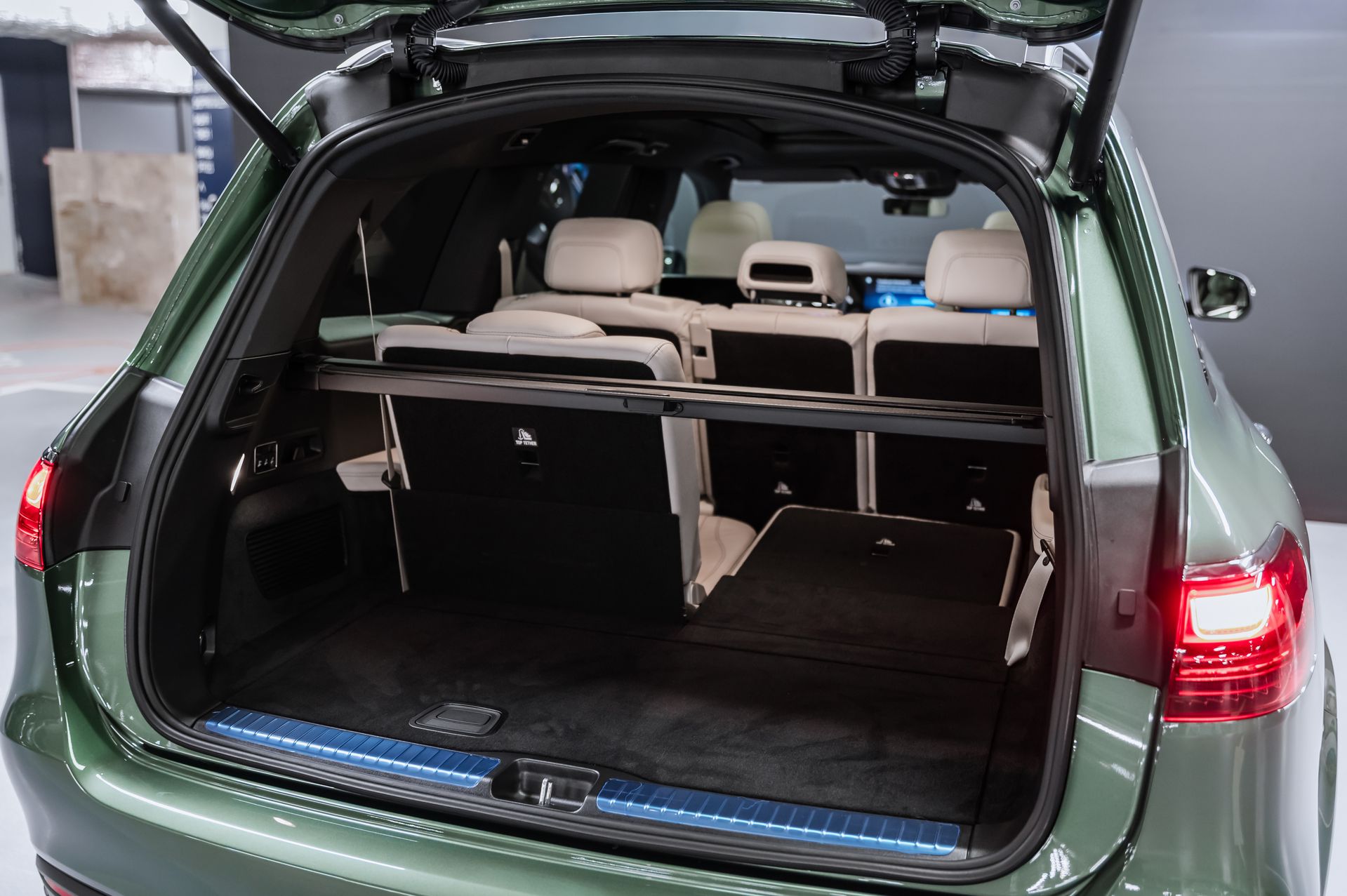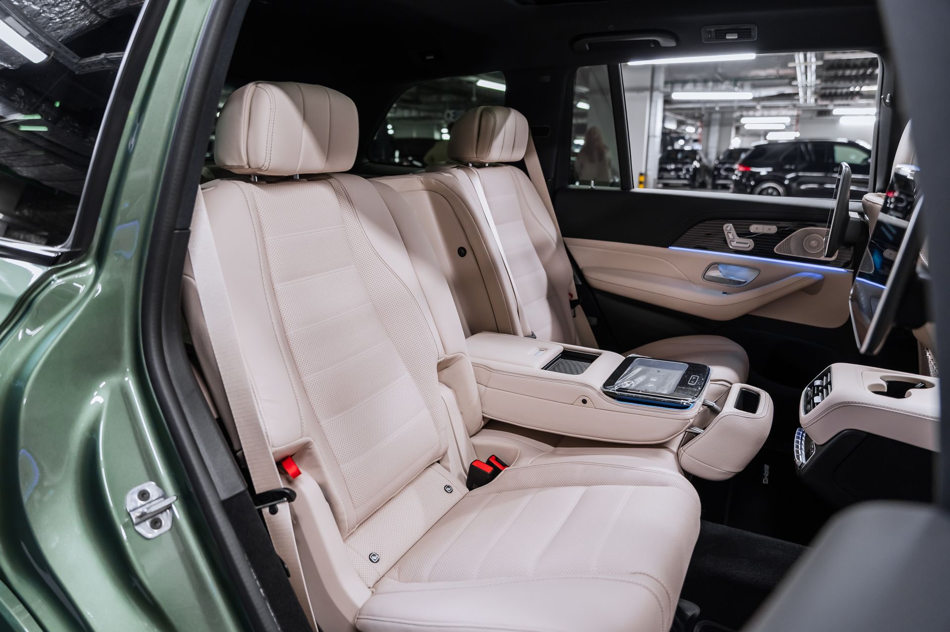 Третий ряд рассчитан на взрослых пассажиров: удобный угол наклона спинки, отдельные подстаканники и порты зарядки. Даже при поднятом третьем ряду остаётся практичный объём багажника, а при его складывании GLS превращается в просторный грузовой отсек для путешествий всей семьёй.