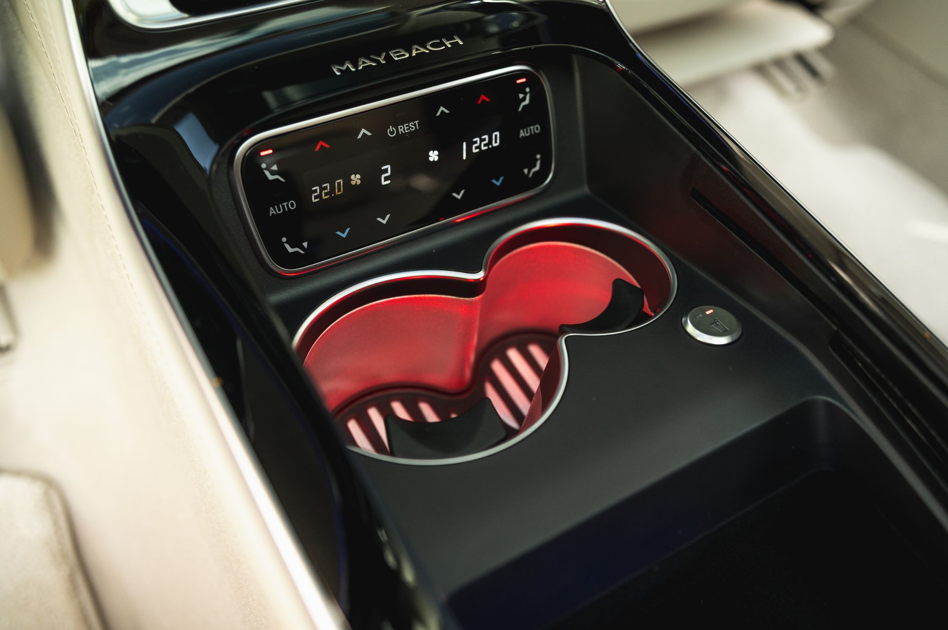 Интерьер выполнен в стиле “эксклюзив” Maybach: высококачественная кожа, премиальные декоративные вставки, сложные сочетания материалов и ручная отделка. Каждый шов, каждая линия панели и дверей подчеркивает особый статус автомобиля и владельца. Здесь нет случайных элементов — всё подчинено идее максимального комфорта и визуальной гармонии.