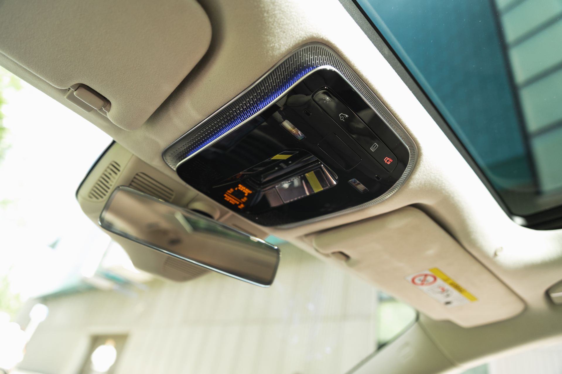 Большая панорамная крыша (power glass moonroof) наполняет салон светом и визуально расширяет пространство, особенно на заднем ряду. В тёмное время суток можно настроить подсветку так, чтобы сохранить чувство уюта и приватности.