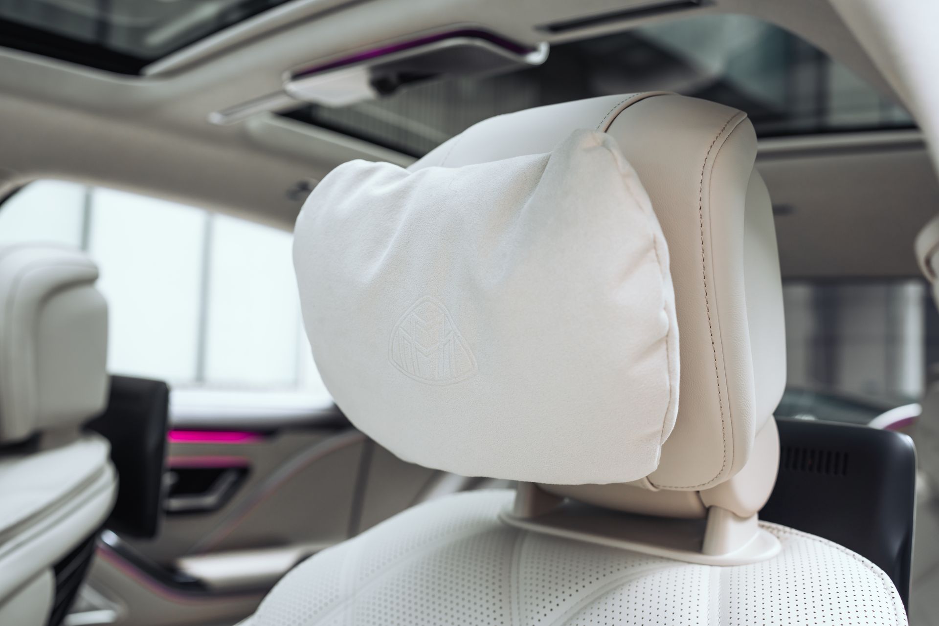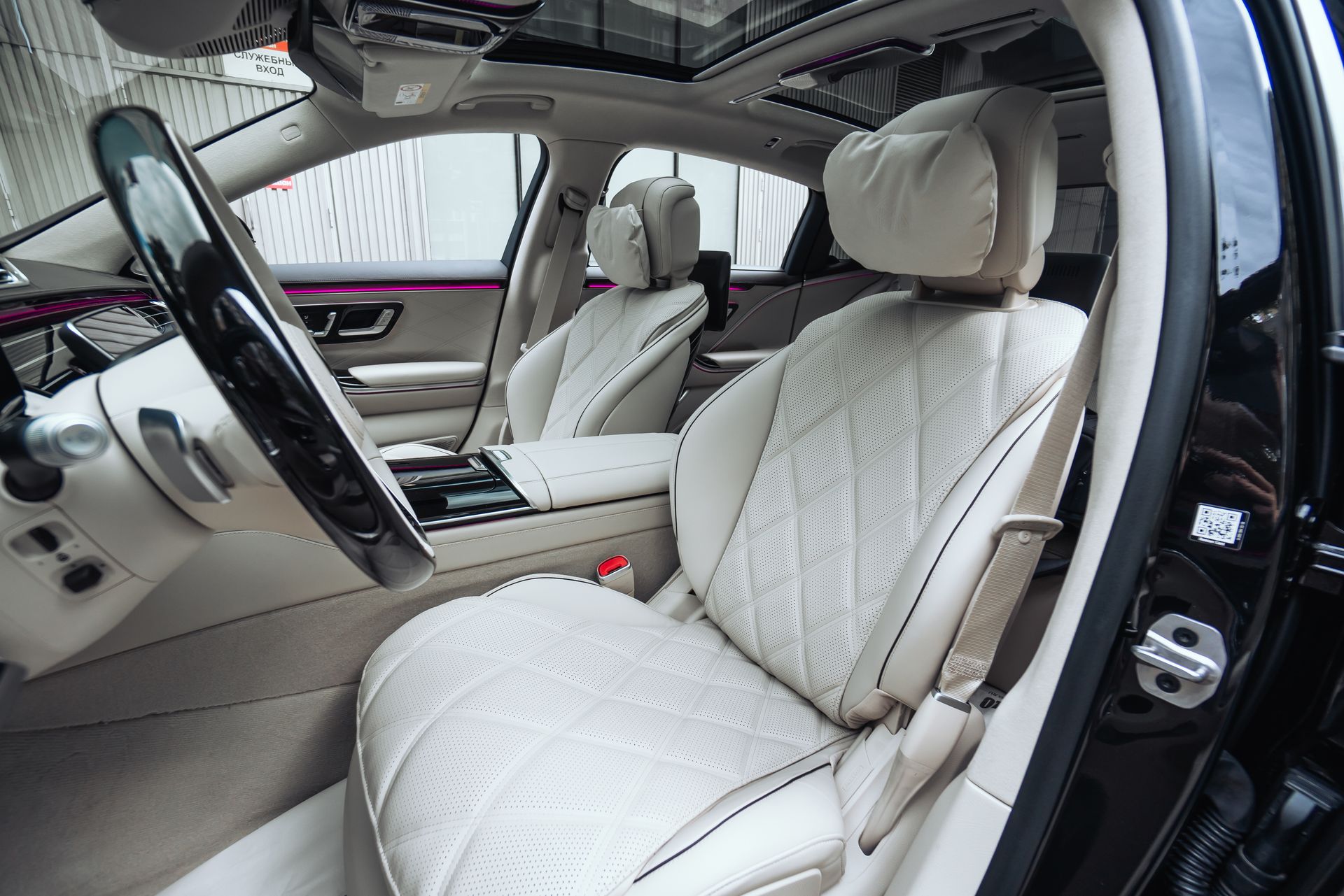 Отдельное впечатление производит анимированное проекционное освещение при открытии дверей: фирменная графика Maybach создаёт эффект торжественной встречи каждый раз, когда вы подходите к автомобилю.
